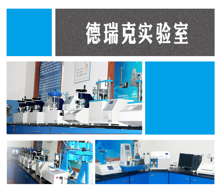 德瑞克除了擁有完善的科研、生產(chǎn)團(tuán)隊(duì)和標(biāo)準(zhǔn)車間外,還擁有一個(gè)國際化的標(biāo)準(zhǔn)實(shí)驗(yàn)室。實(shí)驗(yàn)室總面積約200m2,配備了紙品包裝檢測儀器60余臺,總價(jià)值超過1000萬元,涵蓋抗壓、強(qiáng)度、拉力、耐破、耐折、厚度、撕裂、柔軟度、戳穿、平滑度、剝離、水分、壓縮、熱封、密封等多類檢測項(xiàng)目。