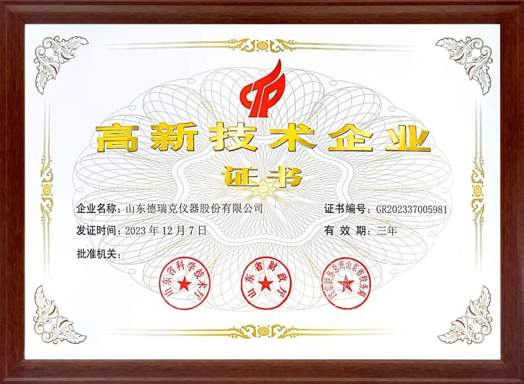 高新技術(shù)企業(yè)由科技部、財(cái)政部、國(guó)家稅務(wù)總局三大部委共同認(rèn)定,山東德瑞克儀器股份有限公司再次榮獲“高新技術(shù)企業(yè)”證書,這是政府部委對(duì)企業(yè)自主知識(shí)產(chǎn)權(quán)、研發(fā)投入、創(chuàng)新能力、成果轉(zhuǎn)化能力、組織管理水平、發(fā)展?jié)摿褪袌?chǎng)前景等方面的一種認(rèn)可,是國(guó)家對(duì)企業(yè)綜合科技實(shí)力的quan威認(rèn)證,更是對(duì)我司未來(lái)發(fā)展的鼓勵(lì)和鞭策。